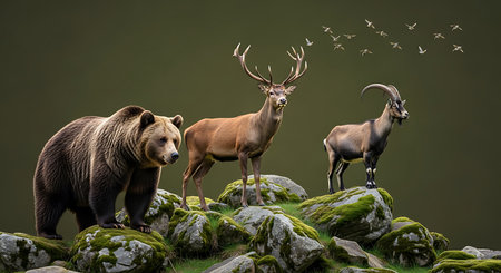 Wild brown bear (Ursus arctos) and wild deer