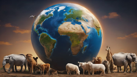 world wildlife day, wildlife concept. creative banner with planet and animals. ai generated