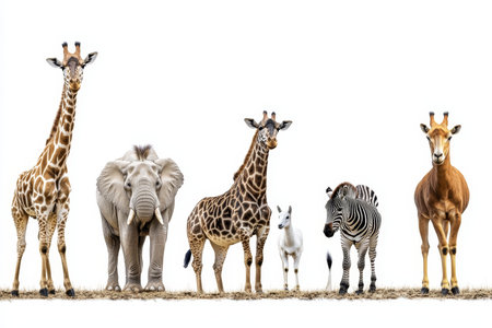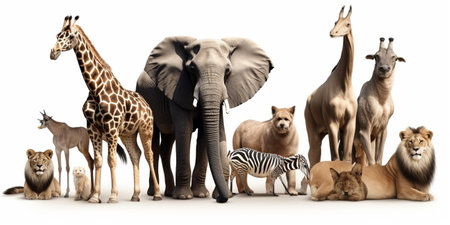An impressive collection of majestic African mammals isolated on a clean white background, showing the diversity of wildlife