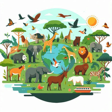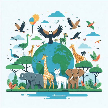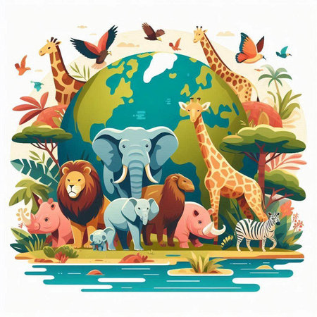 An eye catching illustration of World Wildlife Day with the animals, Earth Day concept. Created using Generative AI tools.