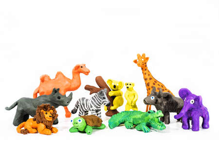 Play Clay World. Figures made from plasticine. Wild nature. Isolated on white background.