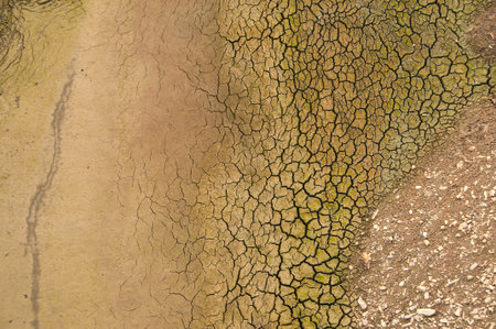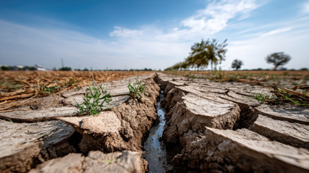 A close-up view of cracked earth illustrates the severe impact of drought and soil erosion on landscapes, raising awareness of climate change and its effects on ecosystems and agriculture.
