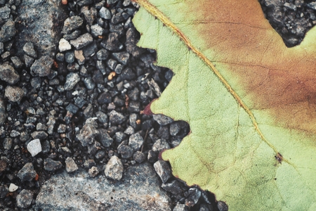 Green leaf on stone background with filter effect retro vintage style and soft focus