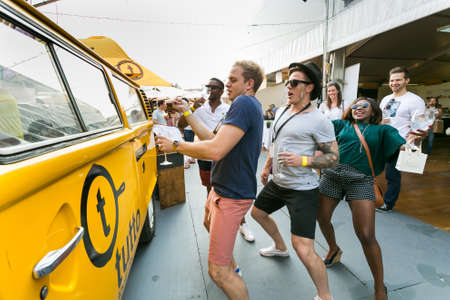 Johannesburg, South Africa - October 10 2015: People Queuing at a Catering Truck at a Food and Wine Fair