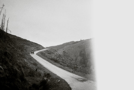 black and white low perspective of a secondary road