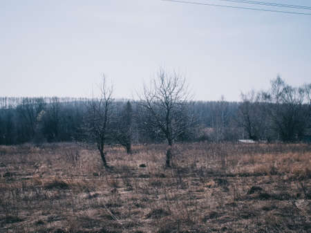 Grassy hilltop dawn cold in dark old tone.
