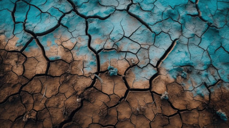 Detailed view of a cracked surface showing intricate patterns and textures caused by natural geological processes. Created with Generative AI