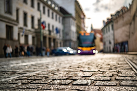 Tram On An Old Cobblestone Street In The Old Town