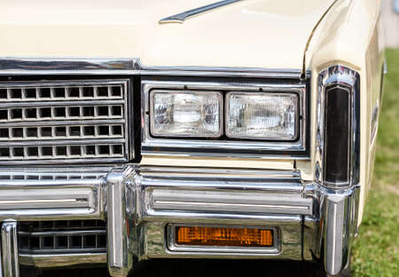 Detail of the headlight of a classic american car.