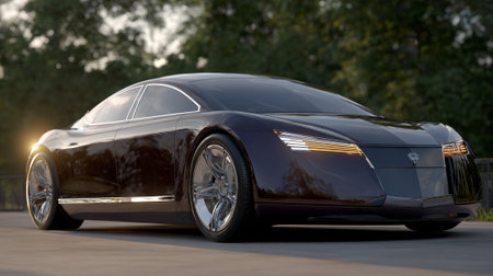 limousine parked on the side of the road at sunset, captured in a super close-up shot. this low angle photograph showcases the high level of detail and realism, thanks to the sony alpha a7 mark iv camera used. the image is in 8k resolution, allowing for a truly immersive viewing experience. ai generated