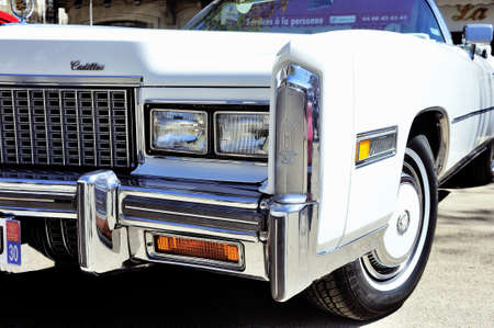 before a white Cadillac Eldorado 1970 photographed at gathering old Town Hall Square cars in the city of Ales in the Gard department