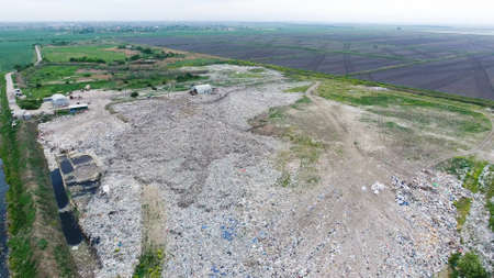 Aerial view of Garbage dump landfill.
