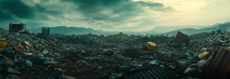 sprawling landfill site overflowing with mountains of discarded plastic waste, highlighting the issue of plastic pollution.