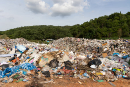 Abstract blurred image. Large Waste plastic bottle pile at Garbage pit landfill sites. A lot of Garbage for recycle management.