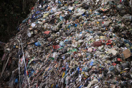 Plastic bags, bottle and heap garbages, waste discarded. Concept about pollution of nature.