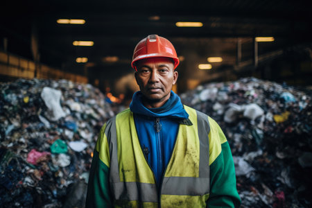 A landfill worker operating heavy machinery to manage and compact waste materials