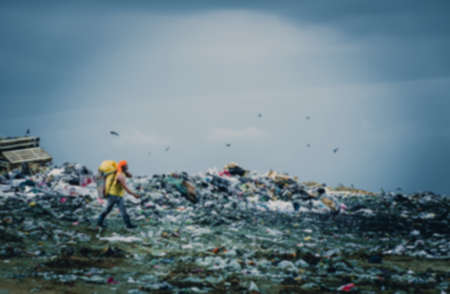 CHONBURI PROVINCE, THAILAND-JULY 13: Picture blur of people working in waste disposal open dump (cinematic tone). Dump site at Chonburi Province on JULY 13 , 2016 in CHONBURI PROVINCE THAILAND