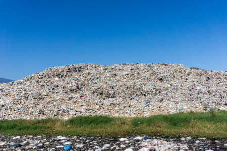 The mountain of plastic waste from urban communities and industrial districts and the blue sky