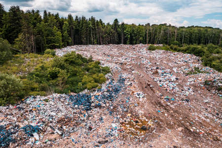Destruction of forests and ecological system by garbage removal in forests, top view, destructive destruction of nature, landfill in Ukraine.