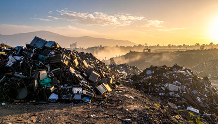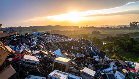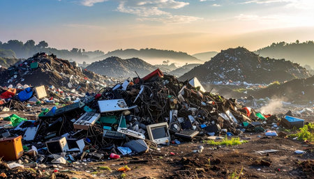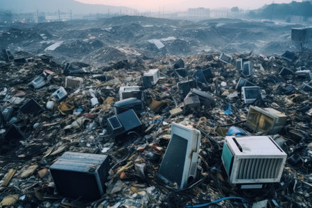 colossal e-waste dumpsite on city outskirts showcases the alarming scale electronic waste pollution.
