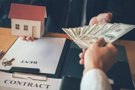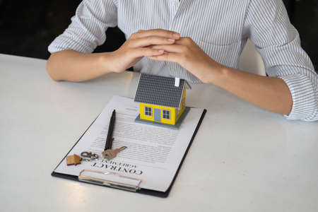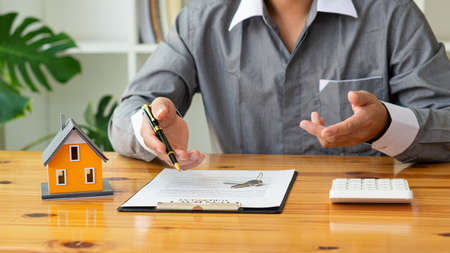 Real estate agents and borrowing, debt contracts and housing investments. Loan Agreement for Investors or Buyers to sign for bank approval, idea of ​​renting a home and selling a home.