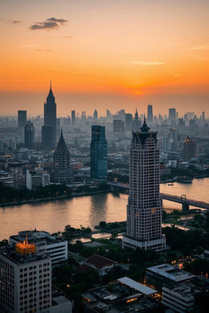 Panoramic view of Bangkok's urban architecture and river