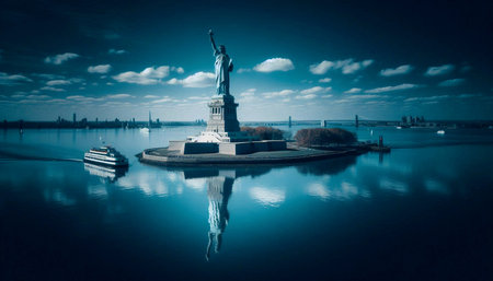 The Statue of Liberty against blue sky, Ai generated image