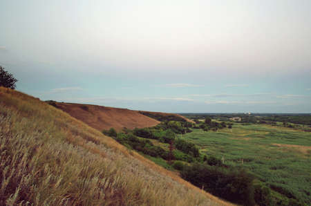 Spring evening landscape outside the city before the rain.
