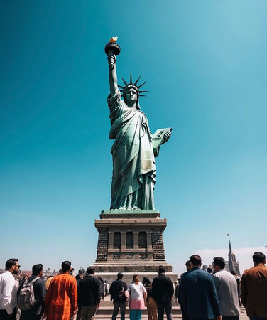 The Statue of Liberty against blue sky, Ai generated image