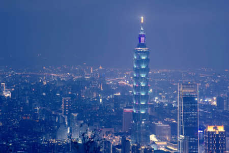 Taipei 101 tower at night in Taipei, Taiwan.