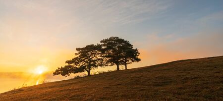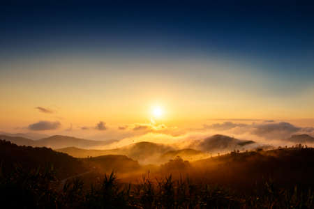 Sunrise scene at the high mountain. Sea Cloud, and fog, Doi Luang, Chiang Dao, Chiang Mai, Thailand. View from the high mountain, Ban San Pa Kia High Mountain Agriculture.