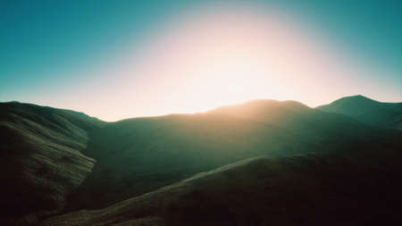 Beautiful sunrise in the mountains. Colorful sky with clouds.