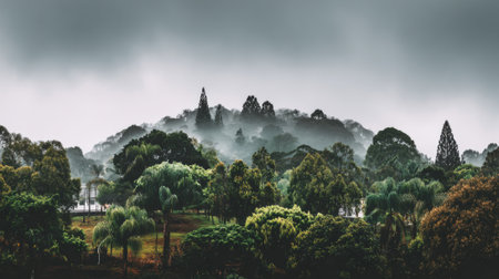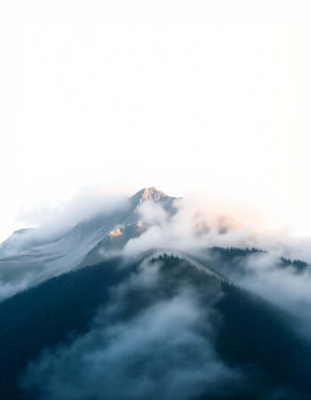 Experience the breathtaking beauty of a misty mountain landscape, where fog gently rolls over hills and trees, creating a serene and tranquil natural scene.