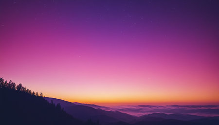 Cinematic view of fog-covered mountains at dawn, revealing majestic nature