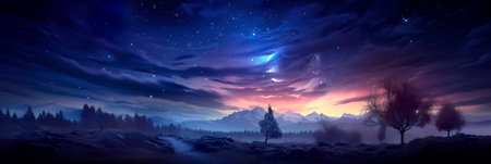 starry night scene deep blues and purples, to evoke the mystery and magic of the night sky. Generative AI