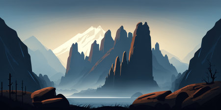 Picture of a mountain lake with a mountain range in the background and a lake in the foreground with a mountain range in the background. vector illustration