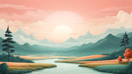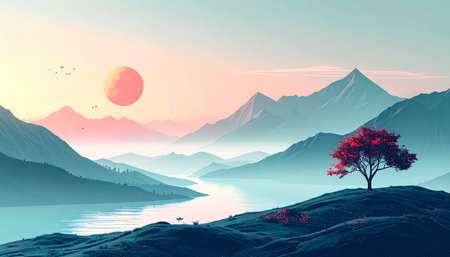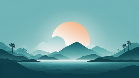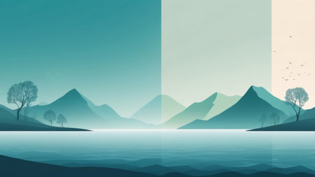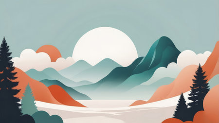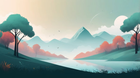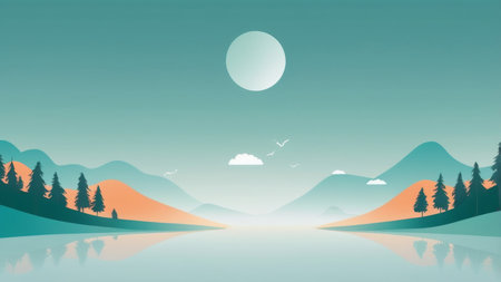 Minimalist Landscape with Geometric Shapes and Calming Colors