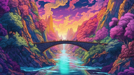 A rainbow bridge over a chasm. Fantasy concept, Illustration painting.