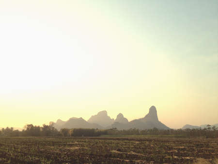 beautiful landscape with green mountains and colorful sky under sunshine in Thailand