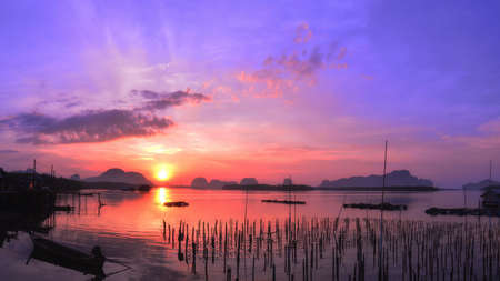 Sunrise at the fishing village in Phang Nga, Thailand.