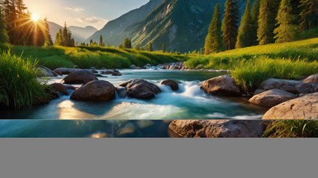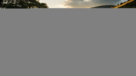 a small stream gracefully meanders through the picturesque valley, capturing the essence of traditional british landscapes. this backlit photograph, reminiscent of national geographic's captivating imagery, showcases the atmospheric beauty of pastoral settings. with its joyful celebration of nature and dramatic atmospheric perspective, this photo transports viewers to a serene and enchanting world. ai generated