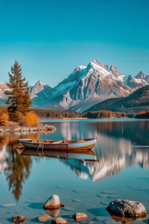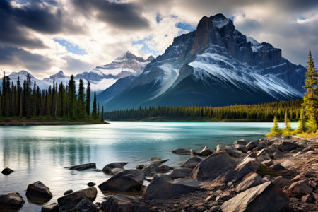 Mountain lake with reflection in Banff National Park, Alberta, Canada