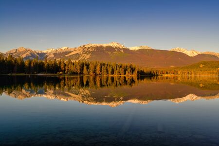 Mountains reflected in the lake. Jasper National Park, Alberta, Canada