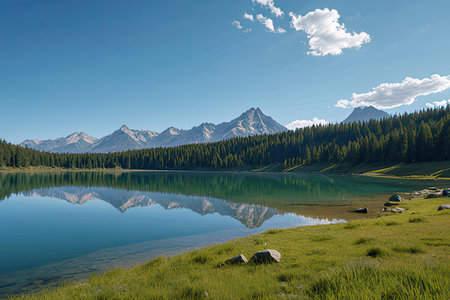 Scenic mountain landscape with lake and forest reflection