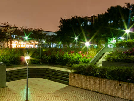 Night exterior view of the NTU Main Library at Taipei, Taiwan