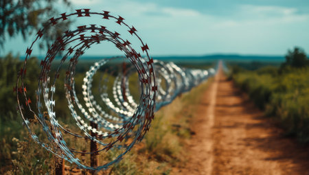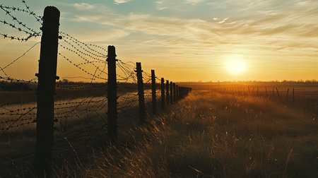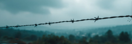 With blurry barbed wire rod fence. Created with Generative AI technology