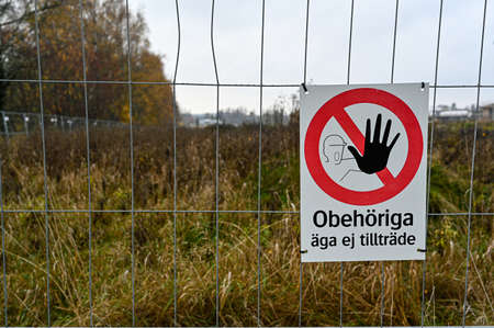 Faro, Portugal - May 3, 2018: Strictly No Access Authorized Persons Only (Acesso Proibido Apenas Pessoas autorizadas) sign in front of Faro International Airport on a spring day