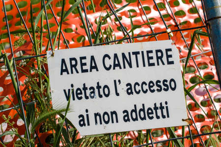 Warning sign and fenced perimeter enclosing a deserted building construction zone