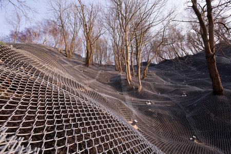 reinforcement of the shore with a metal mesh, reinforced reinforcement