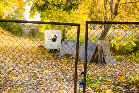 Rotterdam, The Netherlands, April 12, 2020: Fence and sign closing Museumpark as part of municipal covid-19 measures